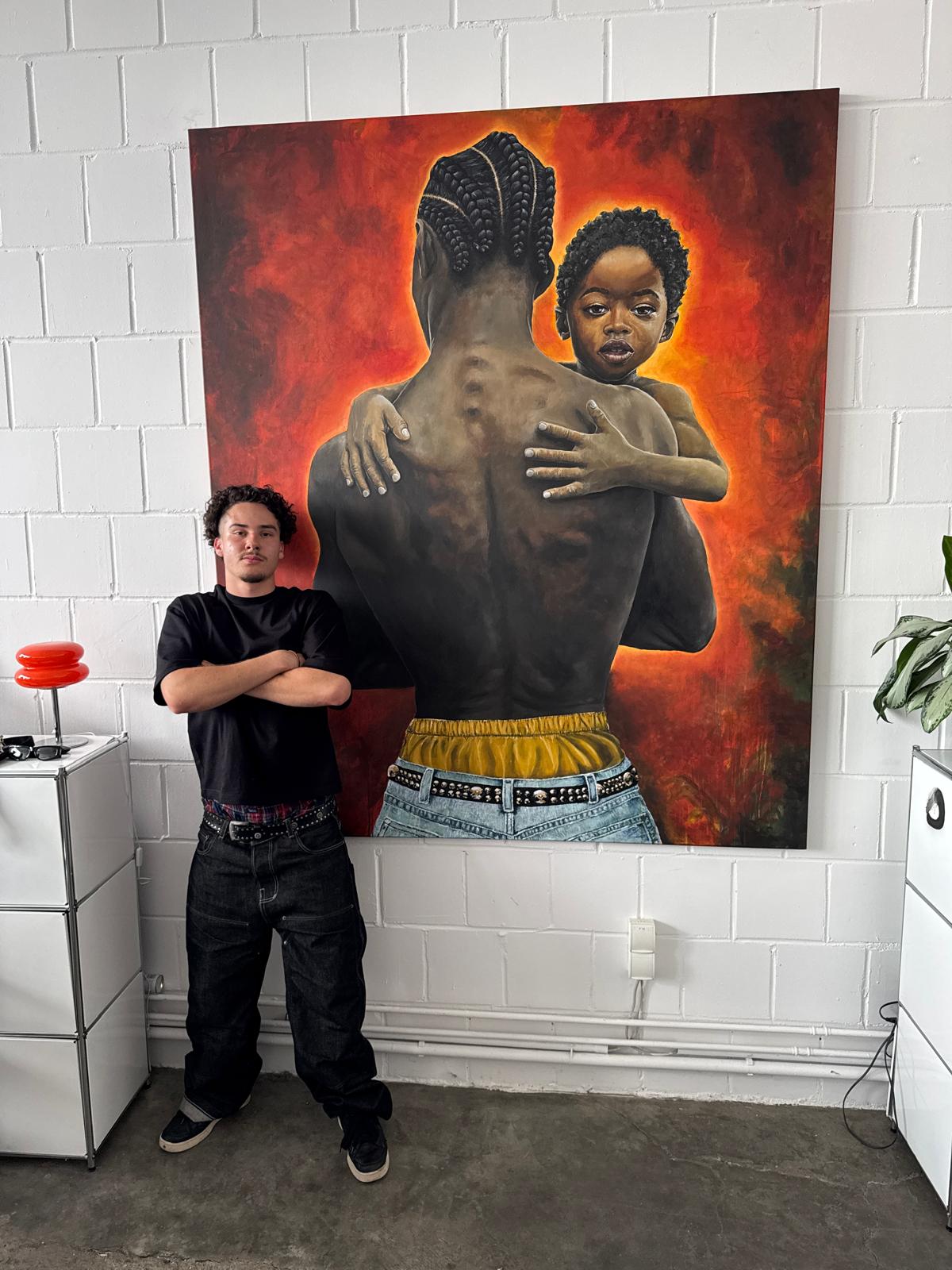 Acryl auf Leinwand, Eine rauchbeleuchtete Pause, in der sich die Macht nach innen wendet, dargestellt in glühenden Tönen und mit rauer Textur, Ein Porträt, in dem Rauheit und Glanz aufeinandertreffen