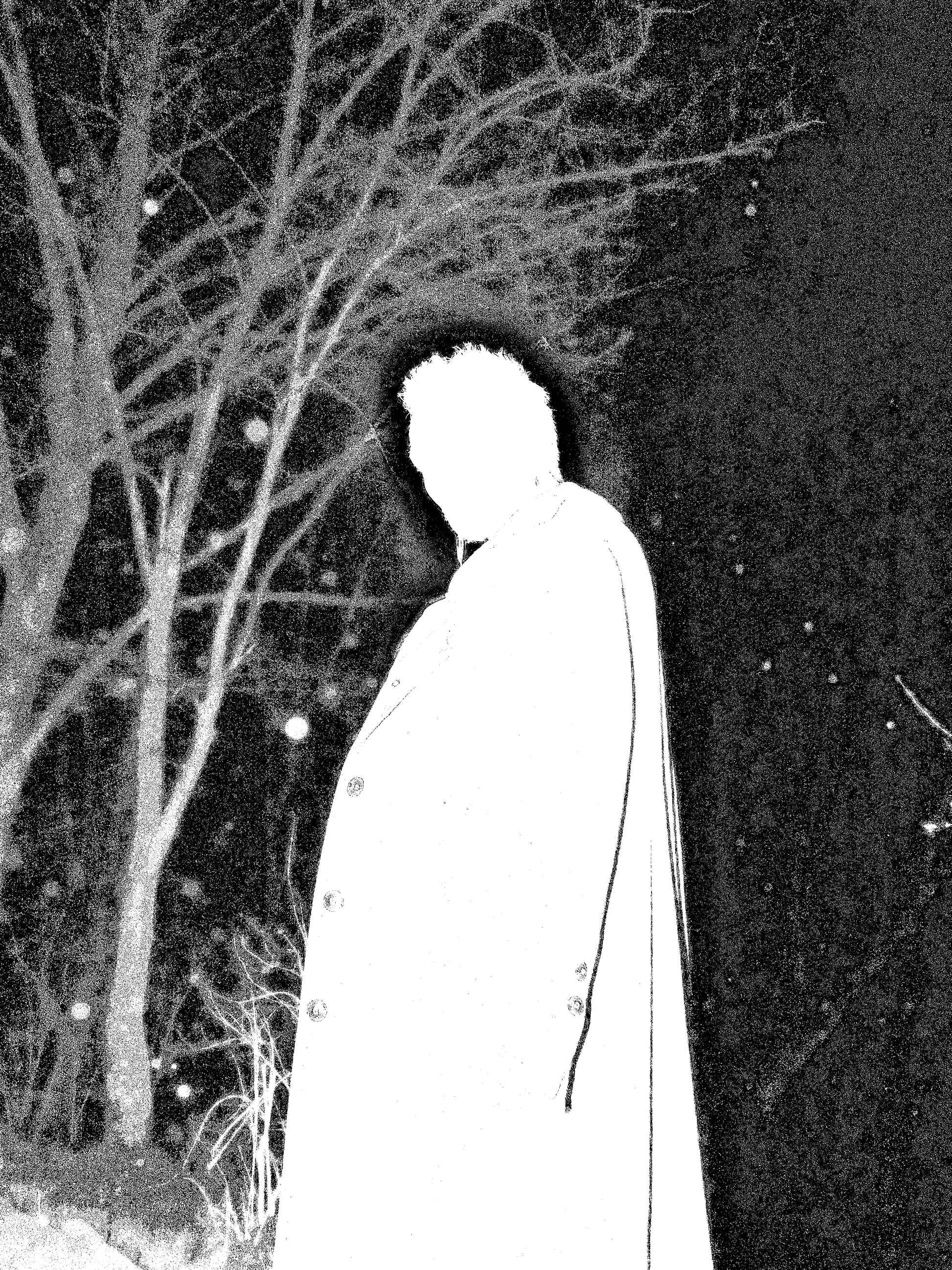 shad7es verwandelt eine vertraute Gestalt in eine Abwesenheit und lässt die Nacht sprechen. Das Bild balanciert auf dem schmalen Grat zwischen Beweis und Auslöschung, wo Details in Körnung und Spiegelung zerfallen.